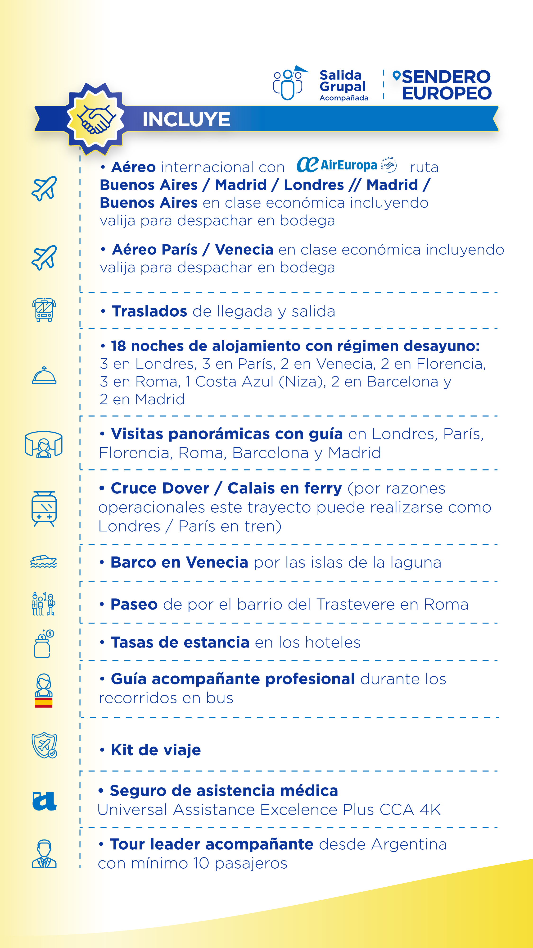 EL PROGRAMA INCLUYE Aéreo internacional con Air Europa Buenos Aires / Madrid / Londres // Madrid / Buenos Aires en clase económica incluyendo valija para despachar en bodega.