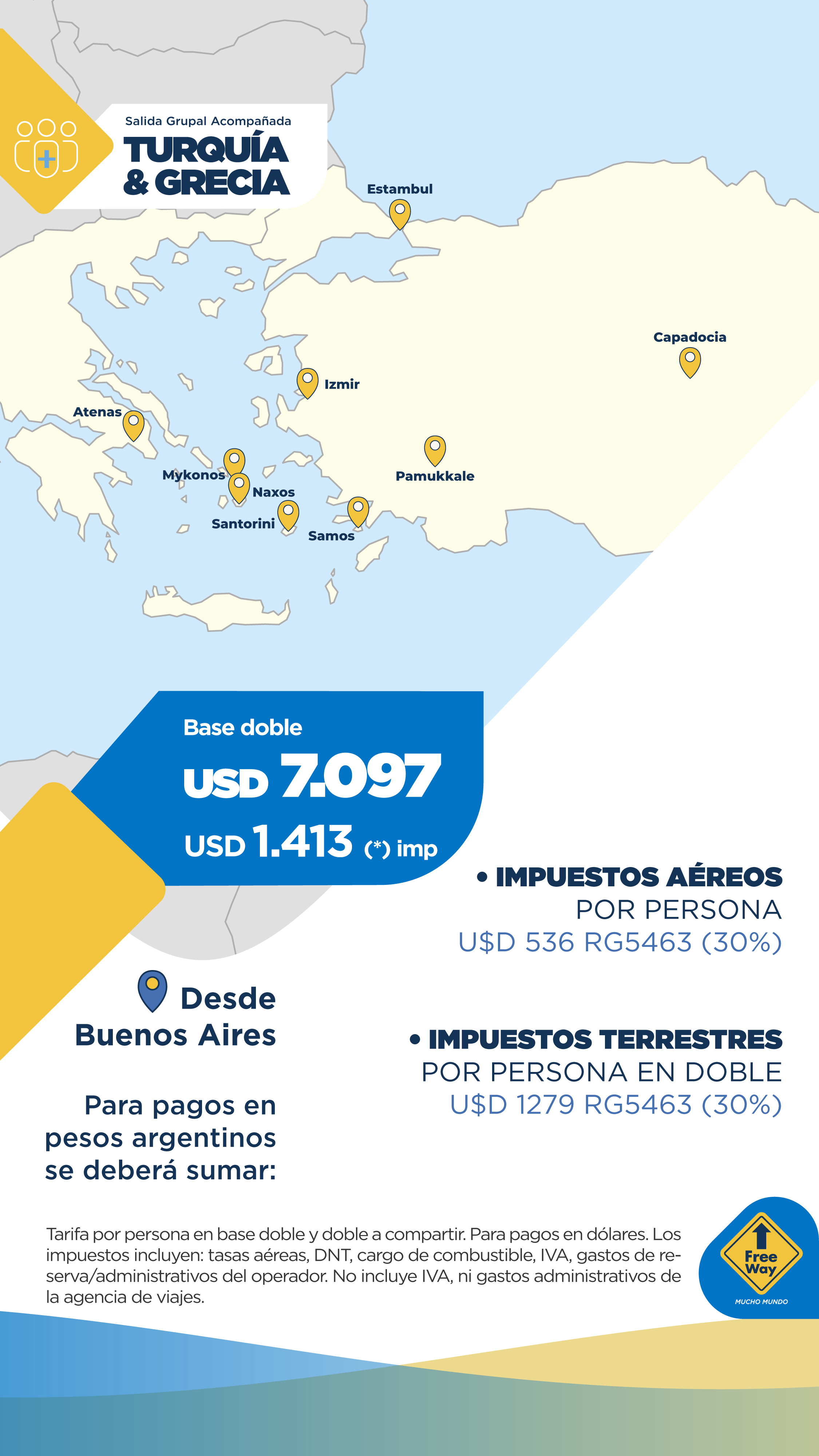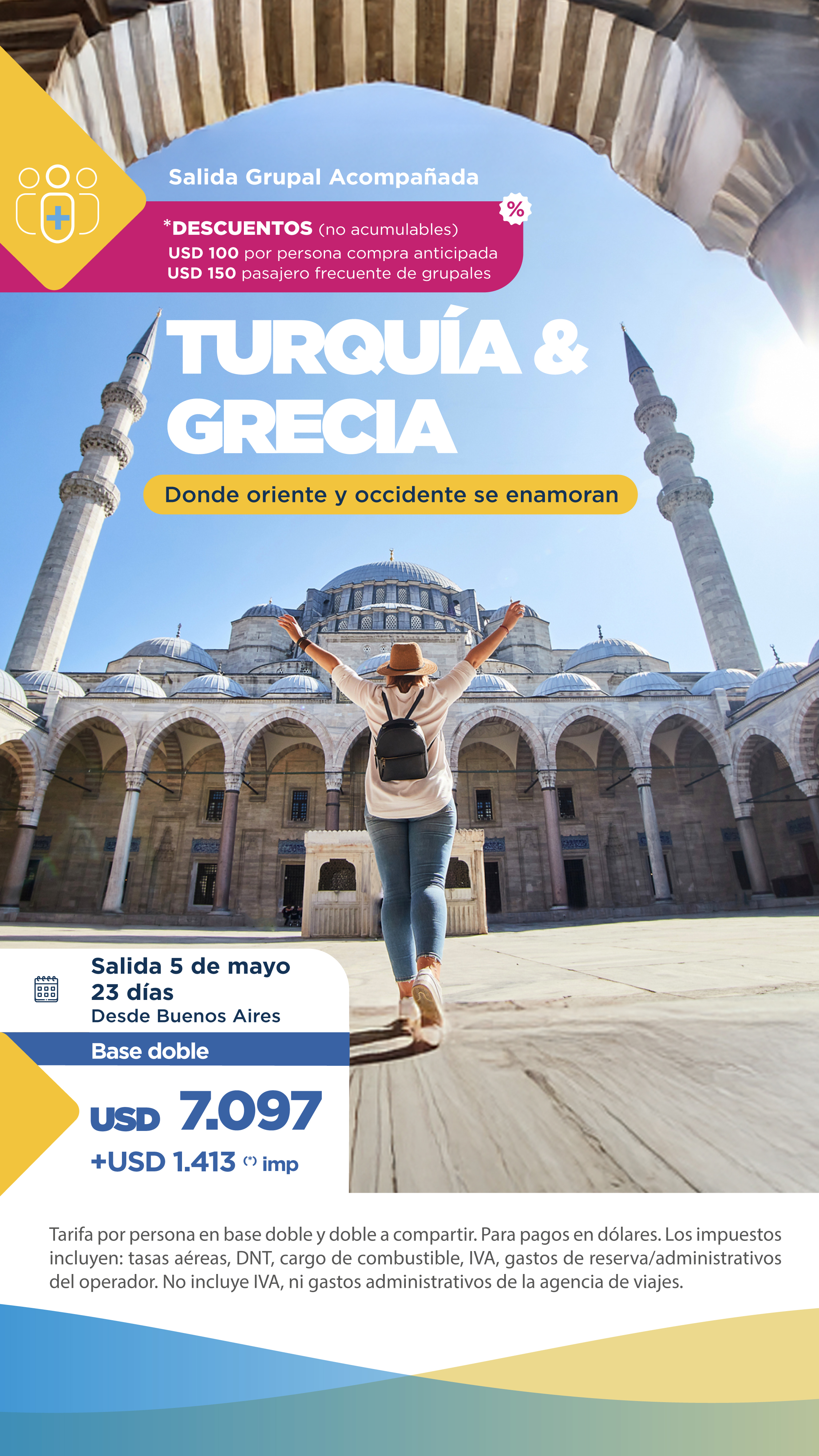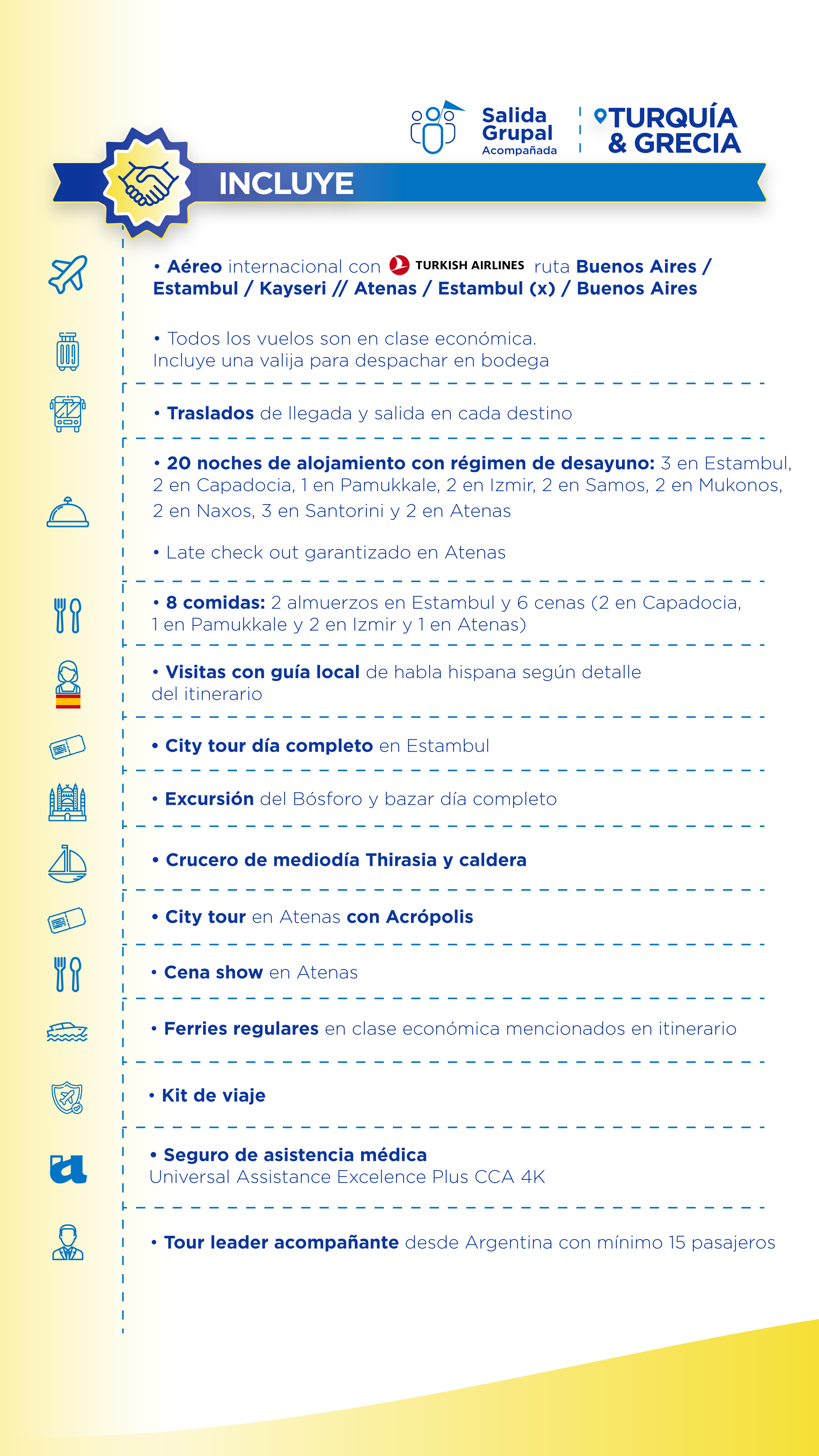 > Los servicios en Turquía están organizados en base a un circuito regular compartido, lo cual garantiza su operación, quedando el acompañamiento desde Argentina sujeto a la cantidad mínima de pasajeros requerido en las condiciones del grupo.